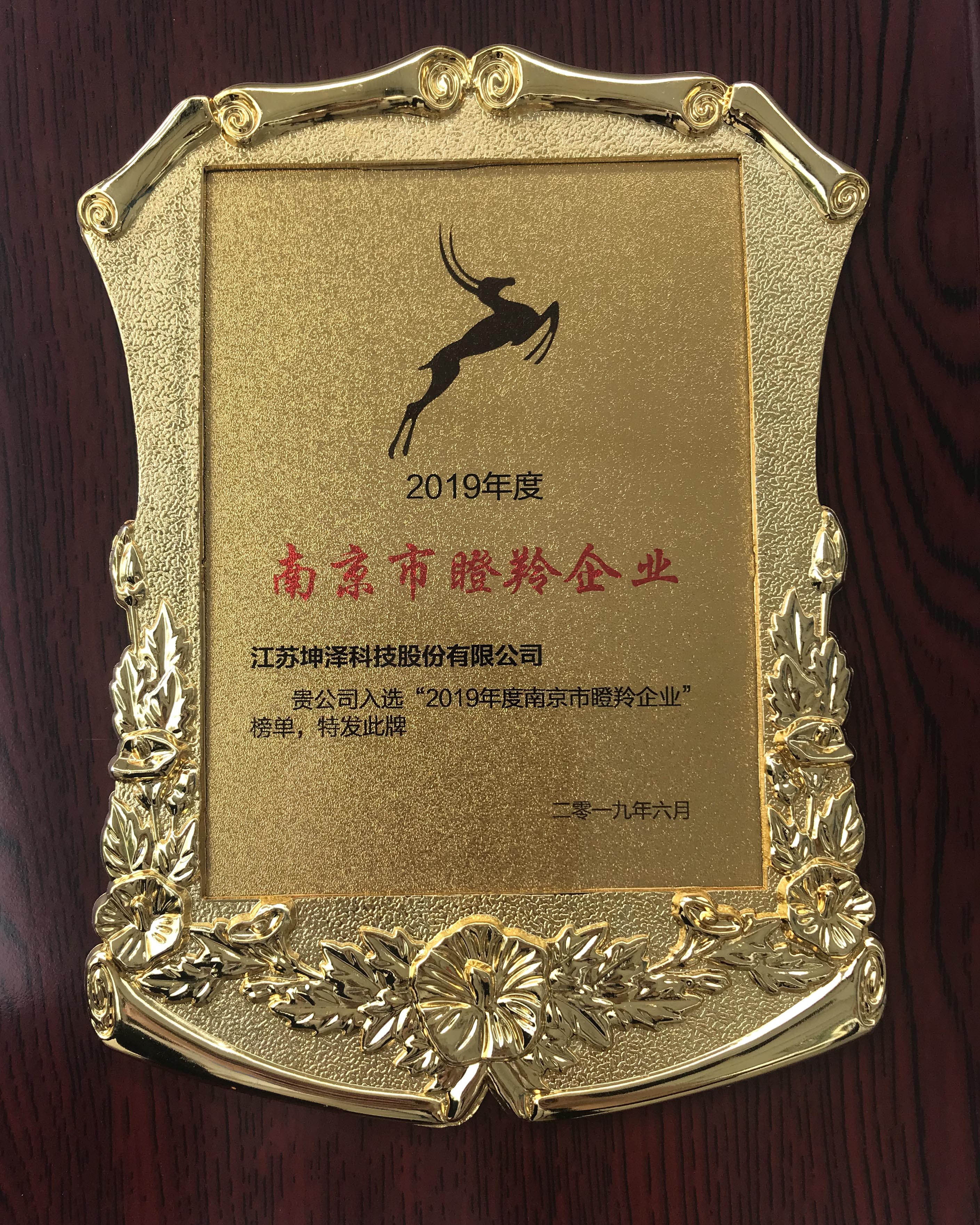 经过激烈角逐与评选,江苏坤泽在数百家高新技术企业中脱颖而出,荣获瞪羚企业此项殊荣!